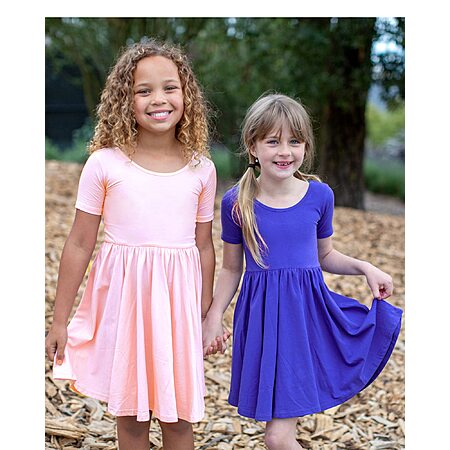 Stelle Toddler/Girls Knee-Length Short Sleeve Casual A-Line Twirly Skater Dress (A02-Pink (without Pocket), 12 Years) $18.98