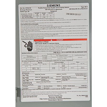 Siemens DTF321R 30-Amp 3 Pole 240-volt 3 Wire Fused Double Throw Safety Switches $709.26