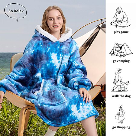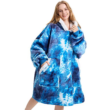 Kipswiza Wearable Sherpa Fleece Blanket Hoodie (Blue Tie Dye) $9.99 + Free Shipping w/ Prime or on $35+