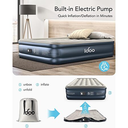 18" iDOO Comfort Raised Blow up Air Mattress w/ Built in Pump (Queen, Grey) $69.99 + Free Shipping