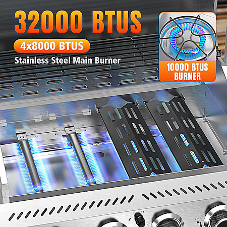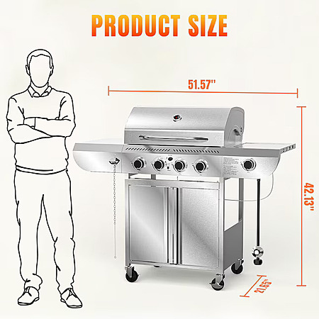 COWSAR Stainless steel 4 -Burner Liquid Propane Gas Grill 1 -Side Burner