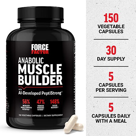 Force Factor Anabolic Muscle Builder, Muscle Building Support Supplements for Men 150 Capsules $34.97