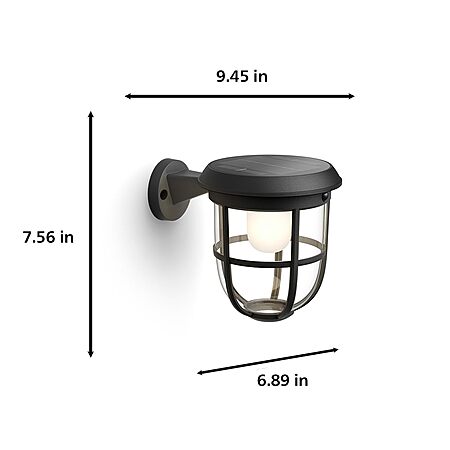 Model: Philips Solar LED 1-Pack Ultra-Efficient Wall Lantern - Radii, Dusk to Dawn, Automatically Linkable, Daylight and Motion Sensor, 3000K Bright White Light, IP44, Black