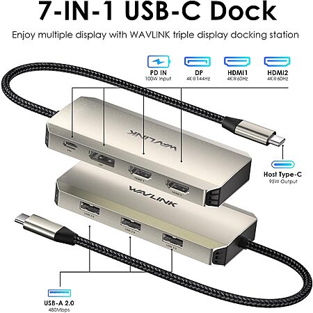 Model: Laptop Docking Station, WAVLINK Triple 4K Docking Station with Dual HDMI, DP, 100W PD in, 3 USB-A2.0 for Wireless Device, Compatible with Dell/HP/Lenovo etc, Windows Systerm Computer Only