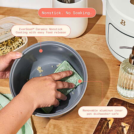 Model: Beautiful 14-Cup Cooked, 6-Cups Uncooked Electric Rice and Grain Cooker, EverGood™ Ceramic Nonstick Coating, White Icing by Drew Barrymore
