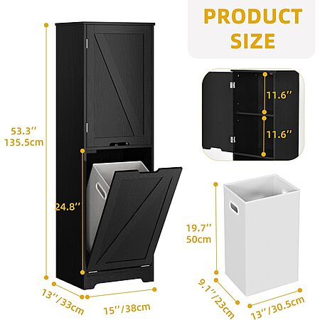 53" DWVO Tilt Out Laundry Hamper Bathroom Storage Cabinet w/ Laundry Basket (Black) $99 + Free shipping
