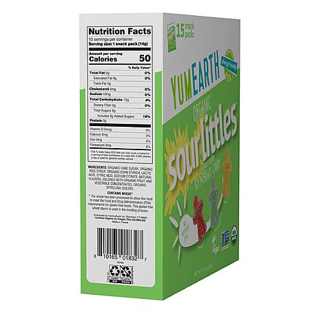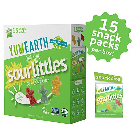 YumEarth Organic Sour Littles Chewy Candy - Allergy Friendly (Top 9 Free), No Artificial Dyes, Non GMO, Gluten Free, Vegan Candy Snacks - 15 Count Box $6.53 S&S