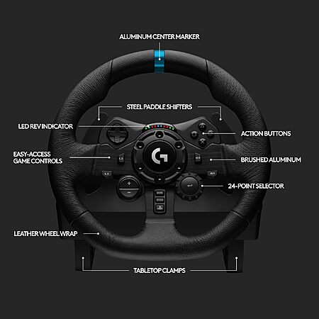 Logitech G923 Racing Wheel and Pedals, TRUEFORCE up to 1000 Hz Force Feedback, Gaming Steering Wheel PS5, PS4, PC, Mac, Genuine Leather- Black $254.99