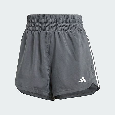 Women's adidas Pacer Training 3-Stripes Woven High-Rise Shorts (Grey Six/White)