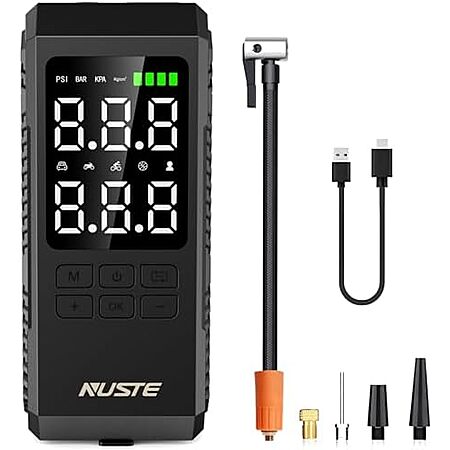 Model: NUSTE Tire Inflator Portable Air Compressor, Air Pump for Car Tires with Digital Pressure Gauge, 150PSI Rechargeable Battery, LED Light, Cordless Bike Tire Pump for Car, Motorcycle, Bicycle