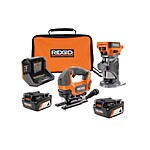 RIDGID 18V Brushless Cordless 2-Tool Combo Kit with Jig Saw, Router, (2) 4.0 Ah Batteries, and Charger $258.00