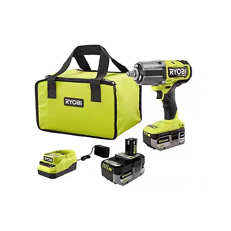 RYOBI ONE+ HP 18V Brushless Cordless 4-Mode 1/2 in. High Torque Impact Wrench Kit with (2) 4.0 Ah Batteries and Charger $179