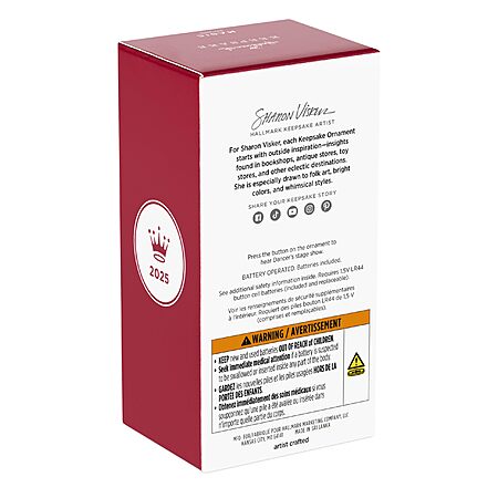 - Includes: One 2025 Keepsake Ornament in gift box. Requires two (2) alkaline LR44 replaceable button batteries (included).