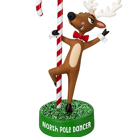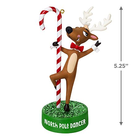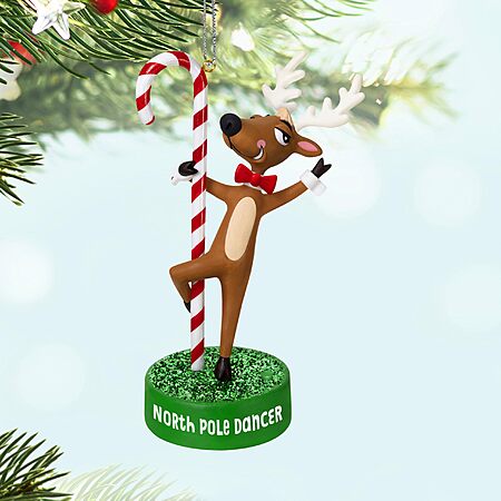 - Bring some frisky fun to holiday festivities with the North Pole Dancer Hallmark Keepsake Christmas ornament. Reindeer strikes a pose around a candy cane with funny dialogue. Battery operated.