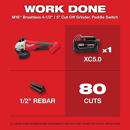 Milwaukee M18 18-Volt Brushless 4-1/2 in./5 in. Grinder with Paddle Switch with 5.0Ah Starter Kit $179