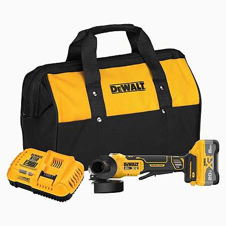 DeWalt 20V MAX Cordless 4-1/2 in.-5 in. Angle Grinder Kit with 8.0 Ah Powerpack Battery, Charger and Kit Bag $261