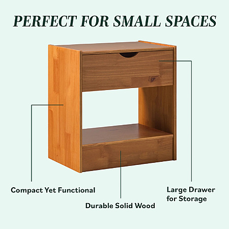Walker Edison Declan 1 Drawer Nightstand, Caramel Brown