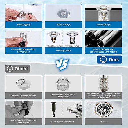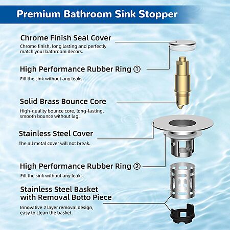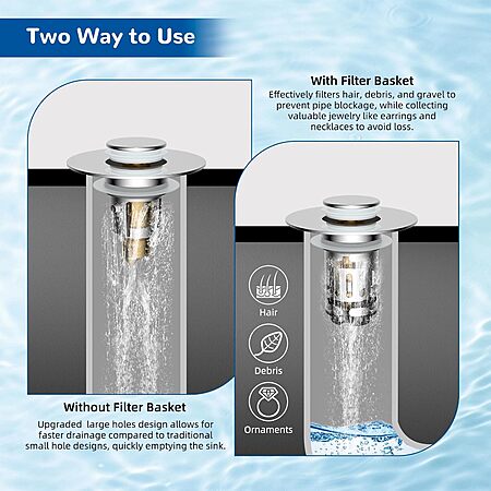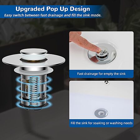 Hibbent Upgraded 3 in 1 Bathroom Sink Drain Strainer, Chrome $7.99