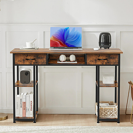 Model: edx Small Desk Fabric Drawers & Storage Shelves, Home Office Computer Desk, Writing Desk Small Space Desk Study Table for Home, Bedroom, 48 Inch, Brown Rust