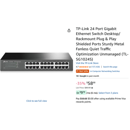 TP-Link 24 Port Gigabit Ethernet Switch Desktop / Rackmount Plug & Play Shielded Ports (TL-SG1024S). New $64.99 or Used - Like New $58.68