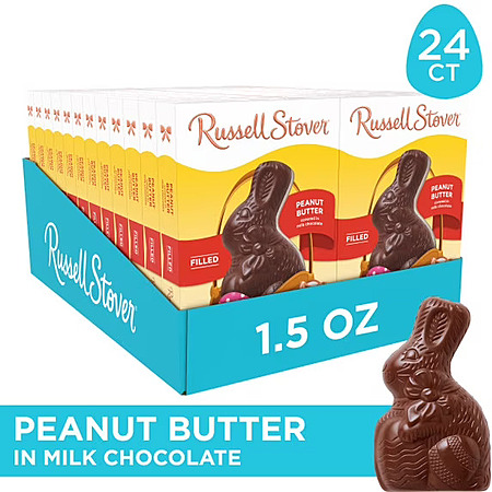 YMMV Russell Stover Peanut Butter Milk Chocolate Easter Bunny Candy, 1.5 Oz, 24 Count $1.72