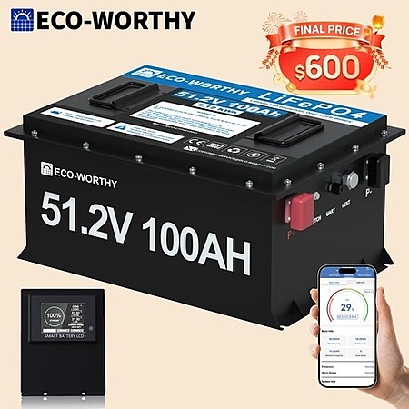 ECO-WORTHY 48V 100Ah LiFePO4 Golf Cart Battery w/ Bluetooth Monitor $600 + Free Shipping