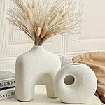 Set of 2 Dobbyby Ceramic Modern Donut Vases (02-Rustic Cream) $12.99 + Free Shipping w/ Prime or on $35+
