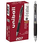 uniball 207 Retractable Gel Pens, Ultra Micro Point (0.38mm), Black, 12 Pack~$12.34 With S&S @ Amazon
