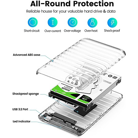 ORICO Clear 2.5 inch USB-C SATA SSD/HDD Enclosure, 5Gbps, Up to 6TB $4.50 + Free Shipping w/Prime or $35+