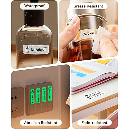 【Label Options and Organization】With Intelligent Identification technology, this mini label maker can automatically recognize the label you put in, support a variety size and kind of label paper, such as clear, colorful, cute gift tapes and round labels. The label refills is waterproof and Oil-proof, which can be widely used in Home Kitchen and School. (This label maker is monochrome printout, which only prints black text. We can create color labels buy using color pattern label tapes.)