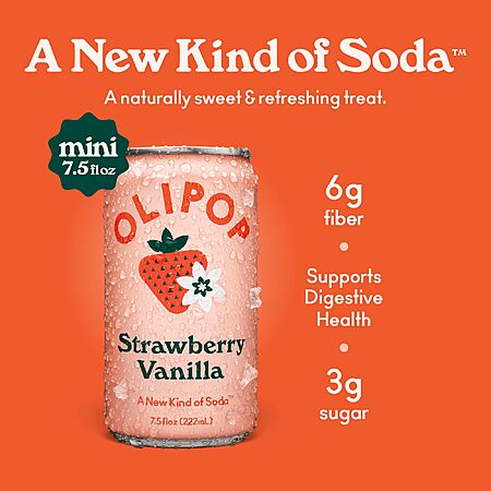 Amazon[amazon.com] has 6-Pack 7.5-Oz OLIPOP Minis Prebiotic Soda Pop (Strawberry Vanilla) for $6 - 10% with Subscribe & Save = $5.40. Shipping is free w/ Prime or on $35+.