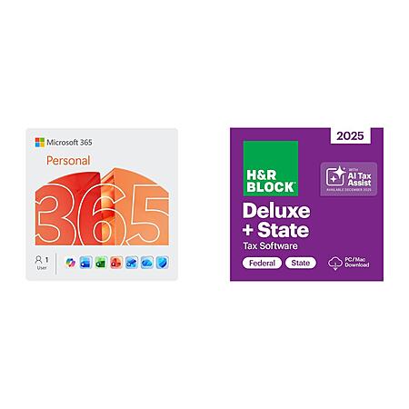 12-Month Microsoft 365 Family (6-User) + H&R Block Deluxe + State 2025 (Digital) $100 & More