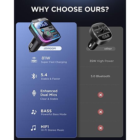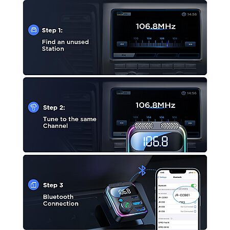JOYROOM Bluetooth 5.4 FM Transmitter + 45W PD & 36W QC 3.0 USB C Car Charger (Black) $9.49 & More + Free Shipping w/ Prime or on $35+