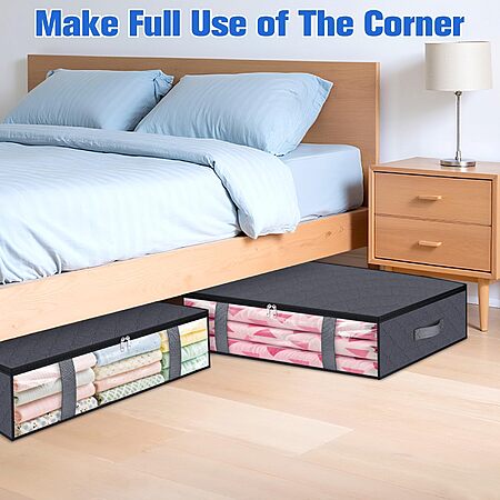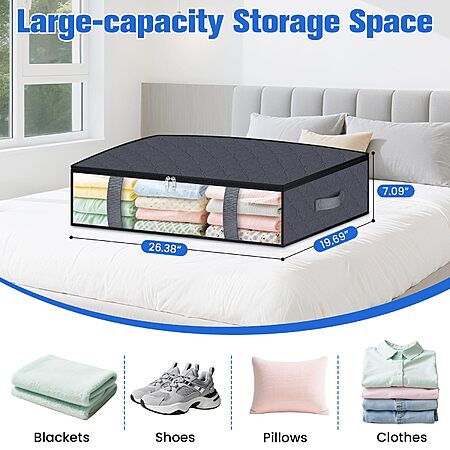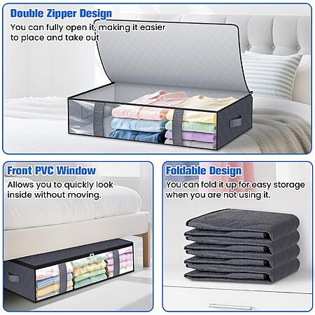 TasticTotes via Amazon [amazon.com] has 4-Pack 60L TasticTotes Under Bed Clear Front Storage Container Bags w/ Zippers (Grey) on sale for $14.97 ($3.74 each). Shipping is free w/ Prime or on orders $35+.