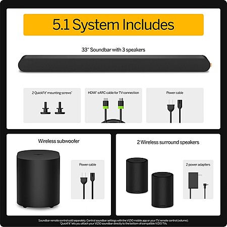 New/Open Box - VIZIO 5.1-Channel 33" Soundbar w/ Wireless Surrounds & Sub $122.31 + Free Shipping