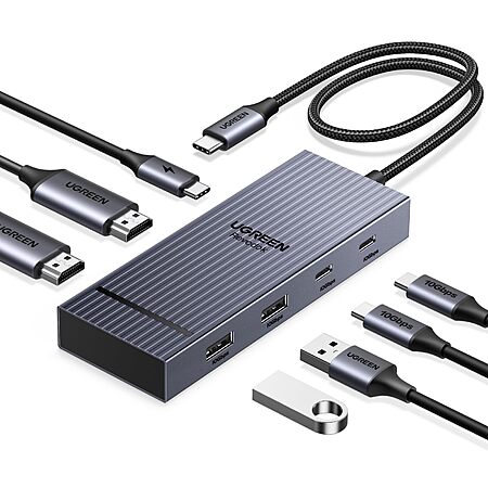 Model: UGREEN 7 in 1 Revodok Pro USB C Docking Station Dual 4k HDMI Monitor, USB C Hub with 2 HDMI, 2*USB A&C 10Gbps Date Transfers, PD 100W, USB C Dock for MacBook Air/Pro, ThinkPad, iPad Pro, and More