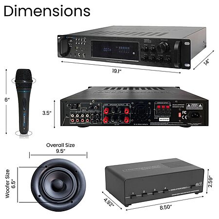 Vaiyer Home Theater System Kit - 7.2 Channel 4500 Watts Bluetooth Amplifier w/ 8 Qty of 6.5" Frameless Ceiling Speakers, 4-Ch Speaker Selector, Mic, 16 AWG 500 ft $383.90