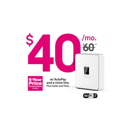 Note: All prices reflect a $20/mo discount for having a qualifying T-Mobile voice line and a $5/mo AutoPay discount. - 5G speeds depend on tower proximity