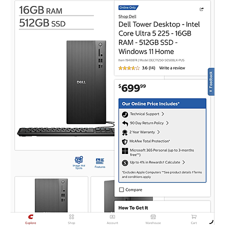 Dell Desktop 16gb ram 512gb SSD on sale for $500 starting March 2