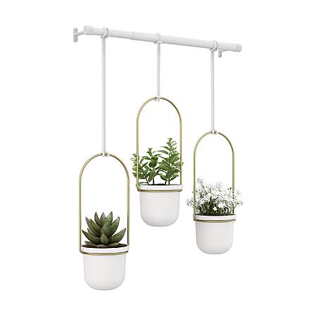 3-Set Umbra Triflora Hanging Planter for Window (White/Brass) for
