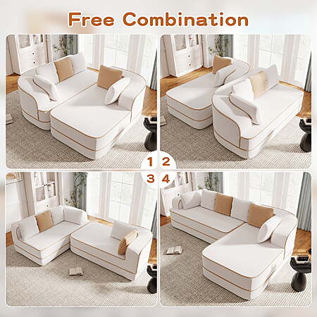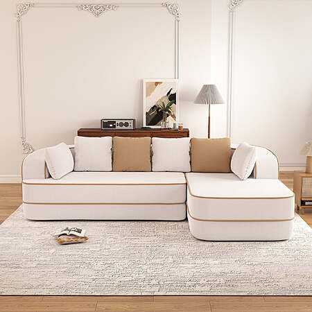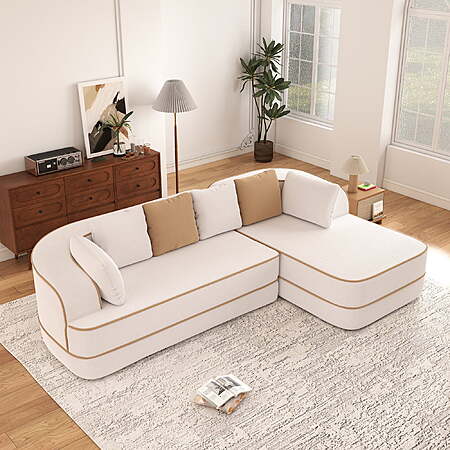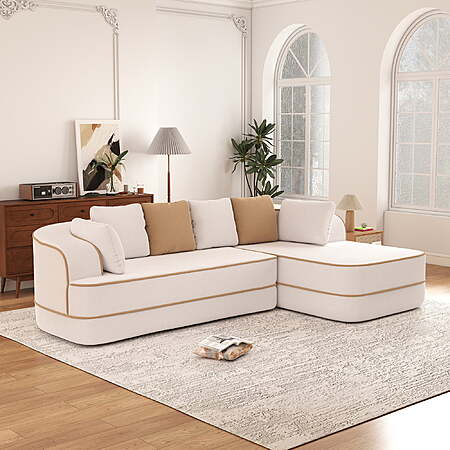 Aukfa 106" 2-Piece Modular Sectional Sofa for Living Room, Right Chaise, Plush Teddy Velvet, White $324
