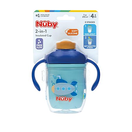 Amazon [amazon.com] has 7-Oz Nuby 2-in-1 Insulated Toddler Cup w/ 360° Weighted Straw & Hard Spout (Submarine) for $5.59. Shipping is free w/ Prime or on $35+.