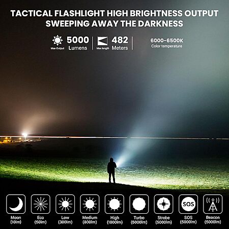 Model: Wurkkos TS23 Tactical Flashlight,5000 High Lumens Rechargeable Flashlight,70.3 HI LED 482M Attack Head LED Flashlights,IP68 Waterproof Flashlights for Emergency,Repair,Camping,Hiking