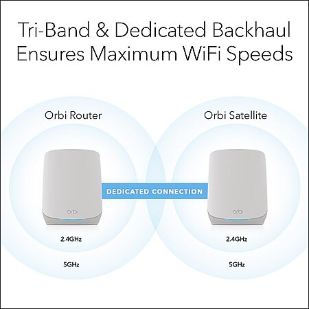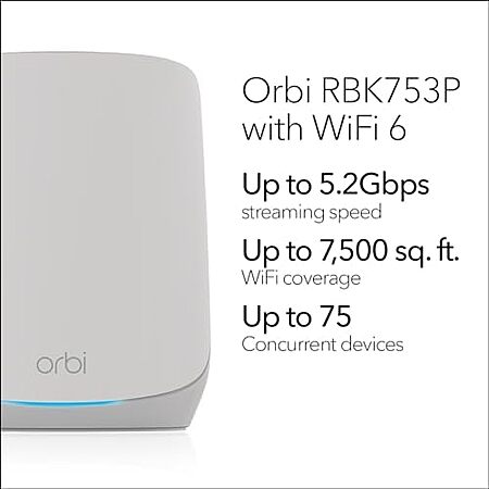 Model: Netgear Orbi RBK753P Wi-Fi 6 IEEE 802.11a/b/g/n/ac/ax/i Ethernet Wireless Router