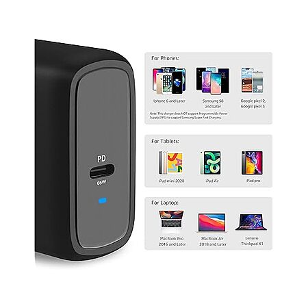 Amazon Basics 65W One-Port GaN USB-C Wall Charger with Power Delivery PD at Woot! $11