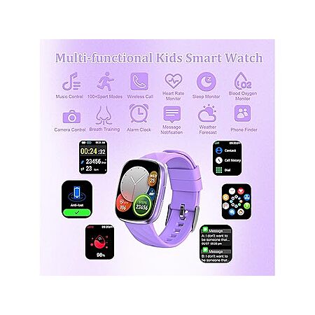 Kids Smart Watch, IP68 Waterproof Fitness Tracker for Boys & Girls (6-14), HD Touch Screen, 100 Exercise Modes, Heart Rate & Sleep Monitor, Alarm Clock (Purple) at Woot!