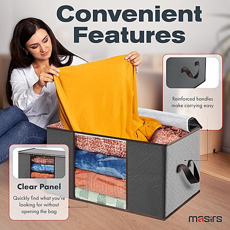 - DURABLE FABRIC & REINFORCED HANDLES FOR EASY CARRY: Crafted from premium material with tear-resistant handles, these storage bags for clothes are made to last and built for comfort when lifting or moving heavy loads