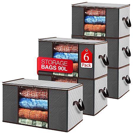 - SMART 6-PACK FOR FLEXIBLE HOME ORGANIZATION: Includes six collapsible, 90L bags that fold flat when not in use—an efficient solution for clothes storage, blanket storage, or under bed organization