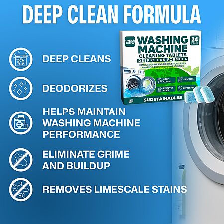 Amazon has for Select Accounts: 24-Pack Sudstainables Washing Machine Cleaner Tablets for $9.99 - $3 when you 'clip' the coupon on the product page - 10% when you check out via Subscribe & Save = $5.99. Shipping is free with Prime or on $35+ orders.