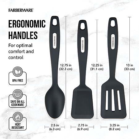 Model: Farberware Set of 3 Nylon Tools, Slotted Turner, Short Turner, Basting Spoon